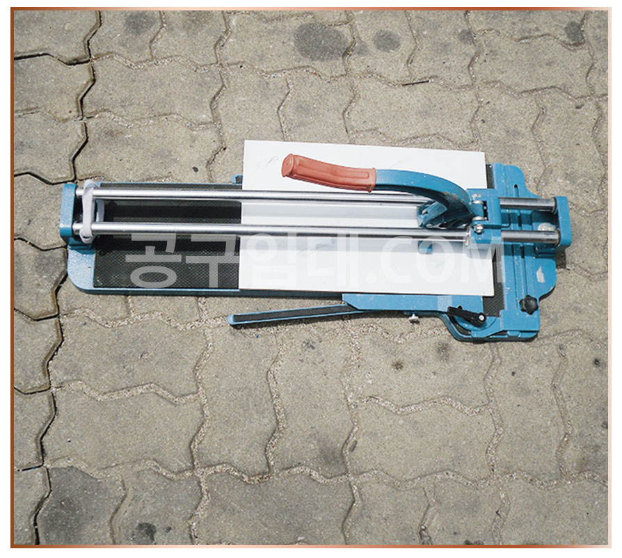 작업손잡이로 타일 끝 부분에 가져가신다음 뒤에서 앞으로 누르면서 쭉 밀면 날이 회전하며 타일이 절단됩니다.