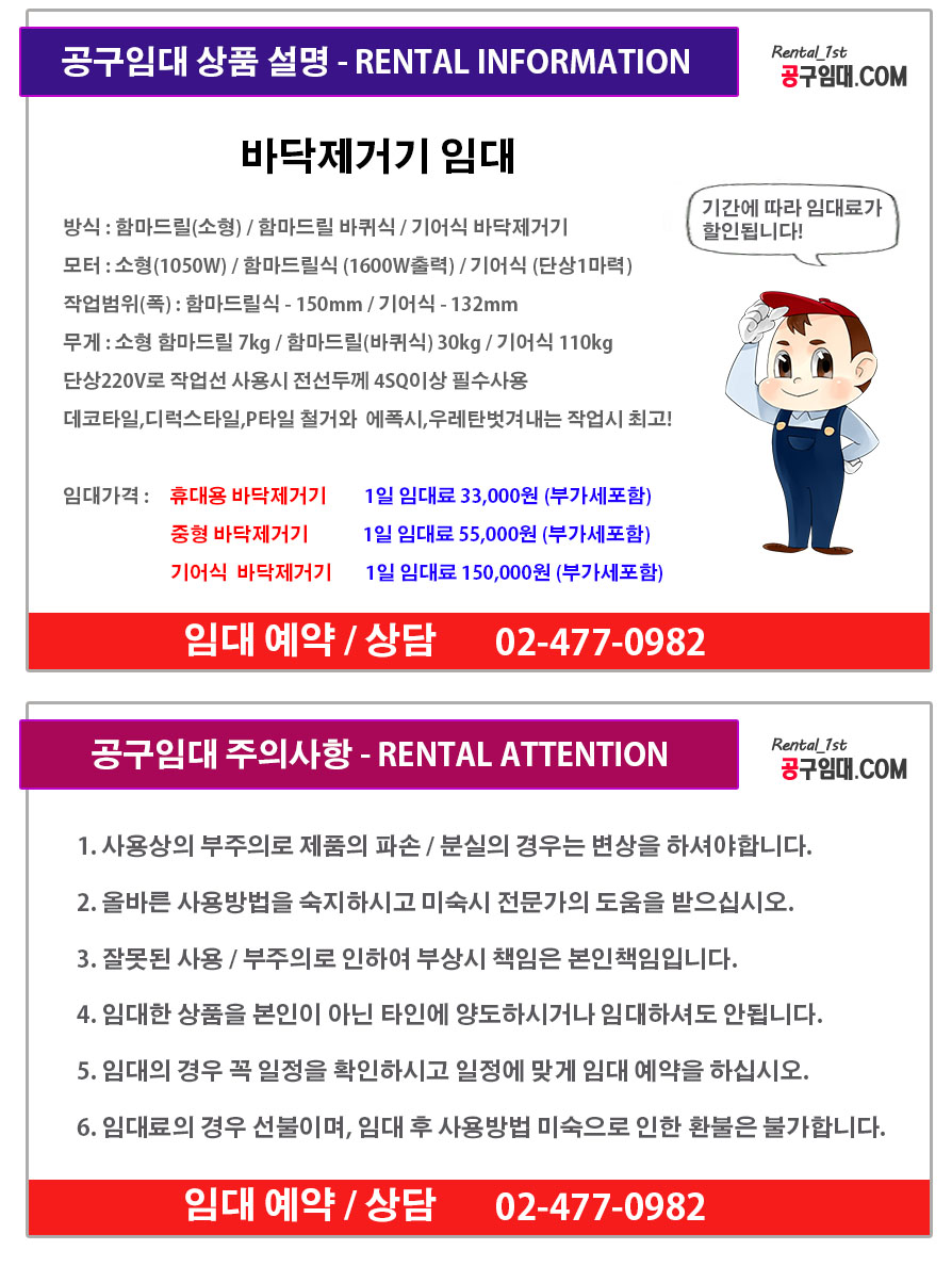 데코타일 바닥제거기 임대와 작업공구 임대는 공구임대(정보)가 책임질게요~^^